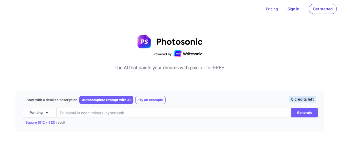 Вы можете попробовать примеры подсказок, чтобы привыкнуть к работе программы, прежде чем создать учетную запись или зарегистрироваться, что является отличным способом получить представление об инструменте и о том, как он работает. Photosonic — это совершенно другая платформа, чем Writesonic, поэтому вы не можете добавить генератор изображений AI к вашей подписке на Writesonic, если она у вас есть. Таким образом, минус в том, что вы не сможете их интегрировать. Это будут два отдельных платежа и платформы.