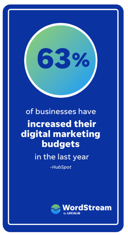 - 63% предприятий увеличили свои бюджеты на цифровой маркетинг только в этом году.