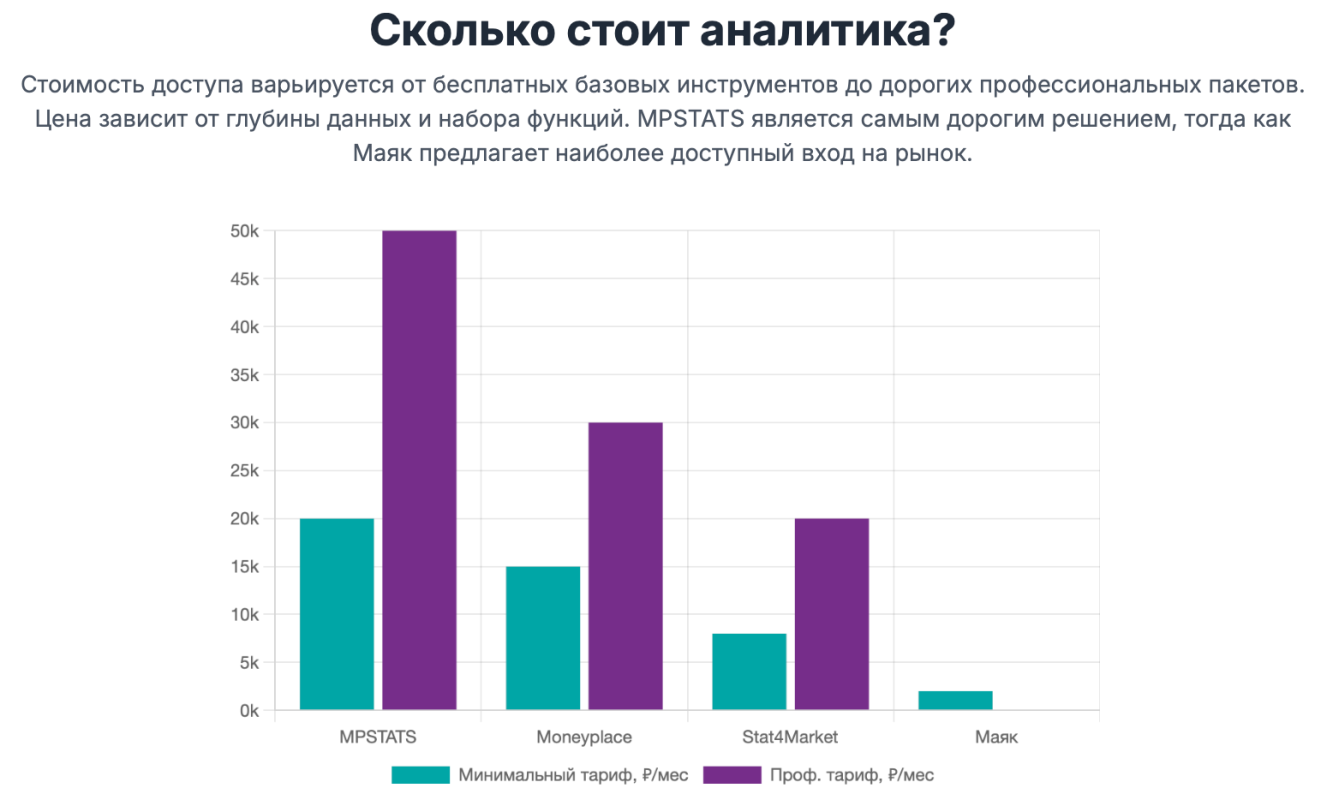 Ответ: Большинство ведущих сервисов делают основной упор на Wildberries как на крупнейший маркетплейс. MPSTATS и MarketGuru исторически известны своими глубокими инструментами именно для WB.58 Однако Moneyplace, Sellmonitor и Маяк также предлагают полный набор функций для этой площадки. Выбор должен основываться не только на площадке, но и на вашем бюджете и специфических задачах.
