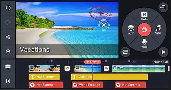 KineMaster — это суперуниверсальный инструмент для редактирования видео, который позволяет редактировать видео на «нескольких слоях». Что это значит? Создатели контента могут добавлять неограниченное количество текстовых наложений, изображений, аудио и даже свободный почерк на отснятый материал для создания художественных деталей, необходимых им или их бренду. Вы также можете смешивать несколько фрагментов видео и использовать двойную экспозицию, чтобы изменить фон самыми разными способами. Конечно, для более простых задач редактирования приложение предлагает интуитивно понятные функции обрезки и разделения, чтобы ваше видео развивалось именно так, как вы хотите.