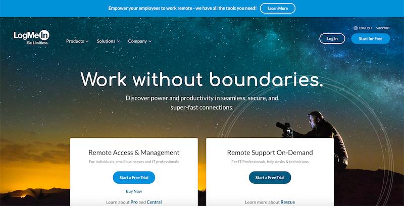 LogMeIn — одно из самых известных имен в экосистеме программного обеспечения для удаленного рабочего стола. Оно обладает уникальными функциями, такими как расширенные возможности настройки для бизнес-пользователей. Кроме того, вы получаете множество возможностей, включая удаленный мониторинг, удаленное развертывание, управление конечными точками и многое другое.