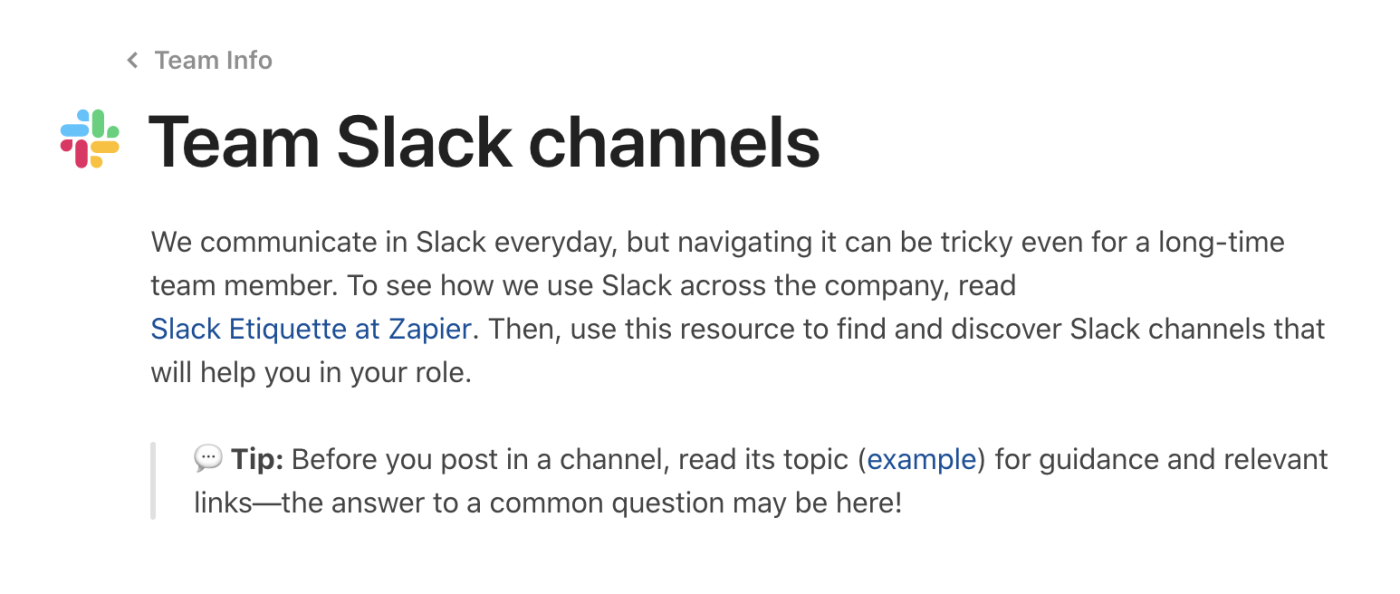 Давайте будем честными: ваши новые сотрудники не имеют ни малейшего представления о том, что происходит. Я точно не знал, когда только пришел в Zapier. Что помогло мне сориентироваться, так это множество внутренних документов, которые были специально написаны с учетом пожеланий новичков.