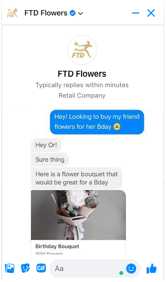Приветственное сообщение не только выглядит профессионально, но и придает вашей компании индивидуальность, которую часто бывает трудно передать в цифровом формате. Вы хотите, чтобы ваши клиенты знали, что вы заинтересованы в общении, и приветственное сообщение — отличный способ продемонстрировать это. Кроме того, вы сможете задать тон беседе. Вы можете настроить это вручную с помощью Facebook Business Manager, но чат-бот автоматизирует этот процесс за вас. Каким бы способом вы это ни сделали, вот как будет выглядеть готовый продукт.