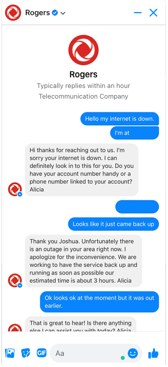 Несмотря на то, что Messenger не является публичным, люди, скорее всего, сделают публичный комментарий, если попытаются что-то решить через Messenger и будут недовольны результатом — или, что еще хуже, будут проигнорированы. Вот пример того, как компания следует трем правилам, описанным выше. Вы также заметите, что сотрудница службы поддержки использует свое имя в конце каждого сообщения. Уже одно это создает человеческий контакт и затрудняет тирады в адрес предполагаемого злодея чатбота. Это также дает клиенту понять, что он все время разговаривает с одним и тем же человеком.