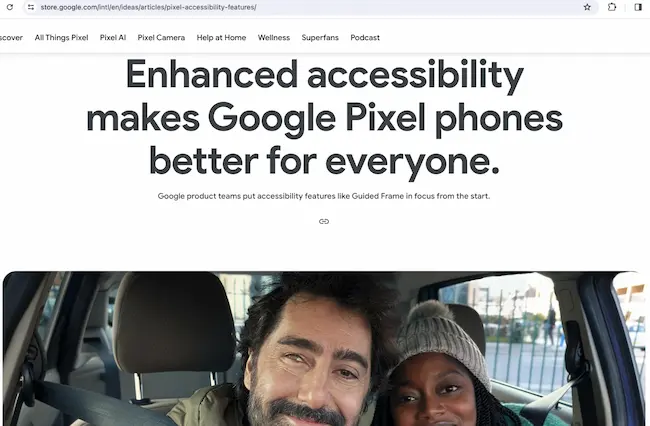 Многие люди из маргинализированных сообществ осознают, чем они отличаются от других и как это влияет на их потребительский опыт. Чтобы свести к минимуму трение и плохой опыт, они часто проводят предварительное исследование, чтобы выяснить, подходит ли им бренд, прежде чем совершить покупку. Наличие SEO-оптимизированного контента на вашем сайте поможет им быстро найти нужную информацию. Кроме того, тот факт, что вы уделили время проактивному предоставлению контента по конкретной теме, которая их волнует, говорит о том, что вы «видите» потребителей, у которых есть такая потребность, и что вы заранее продумали их опыт. Например, я придерживаюсь безглютеновой диеты. Каждый раз, когда я собираюсь посетить новый ресторан, мне нужно заранее просмотреть его меню, чтобы выяснить, есть ли там варианты блюд, которые я смогу съесть. Однако рестораны часто не размещают эту информацию на своих сайтах. Иногда я провожу вторичный поиск, чтобы найти меню, но попадаю на не связанные между собой сайты, например Find Me Gluten-Free. Это упущенная возможность. И почти каждый раз, когда такое случается, я в итоге иду в другой ресторан, который ориентирован на безглютеновую диету и четко указывает это в своих меню на сайте. Эта страница с сайта Google — хороший пример. Она демонстрирует возможности телефонов Google Pixel по обеспечению доступности, включая спонсируемое видео. В нем также приводятся отзывы людей с ограниченными возможностями, которые используют эти функции для достижения своих целей.