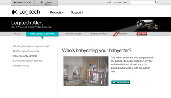 На сайте системы видеобезопасности Logitech используется отличный заголовок, отражающий страх родителей перед тем, что их дети не в безопасности. Заголовок: «Кто присматривает за вашей няней?»