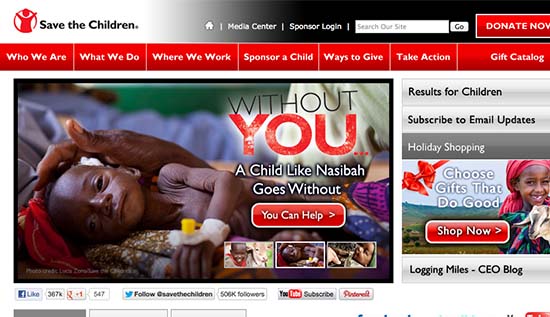 В этом примере с сайта Save the Children изображение голодающего ребенка взывает к эмоциям зрителя, в то время как копия переводит стрелки на вас, Без вас такой ребенок, как Насиба, останется без средств к существованию. Общеизвестно, что такие организации, как эта, сталкиваются с ситуациями жизни и смерти. Эта реклама подчеркивает страх, который уже известен, и предполагает, что зритель может найти решение.