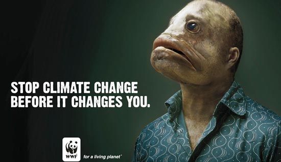 Эта реклама об изменении климата использует страх перед концом света, который испытывают люди в связи с изменением климата. WWF предлагает решение в виде действий зрителей. Фактически, весь сайт WWF создан для того, чтобы создать угрозу, а затем предложить решение,