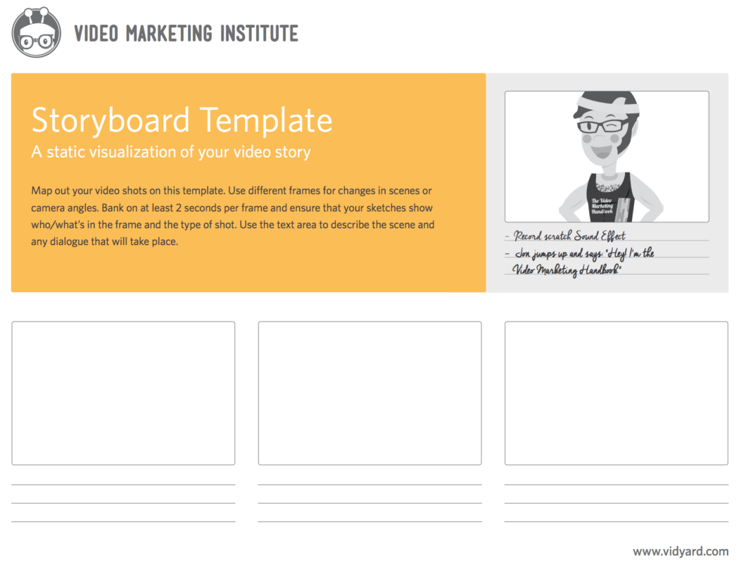 - Шаблоны раскадровки, например, этот для Google Slides или этот от Vidyard