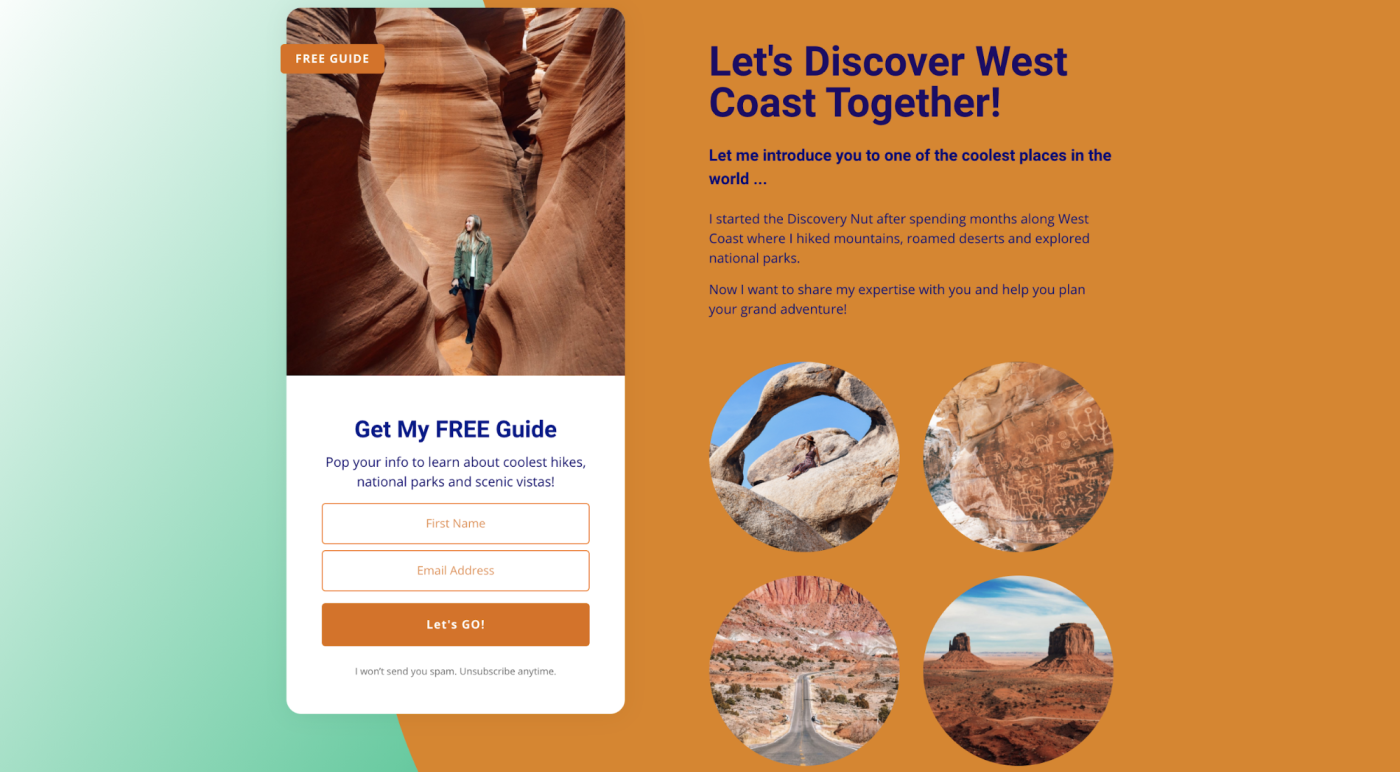 - Решайте проблемы своих клиентов. Чтобы заставить людей покупать у вас, вам нужно предоставить ценность, а не просто хорошую историю. В зависимости от вашего бизнеса ценность может быть представлена в разных формах. Это могут быть статьи в блоге, видео, обучение, бесплатные продукты или консультации. Лучший способ выделиться? Посмотрите, что делают все остальные в вашей нише. Если ваши конкуренты предлагают бесплатные советы только в виде рассылки по электронной почте, вы можете предложить бесплатную личную консультацию. Например, я предлагаю обширный путеводитель по лучшим местам отдыха на Западном побережье, который отвечает на болевые точки моей аудитории.