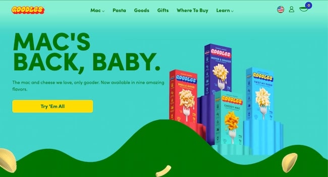 Goodles — это бренд лапши, который выводит коробочные макароны с сыром на новый уровень. Этот продукт отличается более высокой питательной ценностью по сравнению со стандартной сухой лапшой: в каждой порции содержится 10 г белка и 7 г клетчатки с пребиотиками. «В макаронном отделе полно золотистых, аль денте макарон, которые содержат очень мало питательных веществ. Есть также раздел «альт-паста» с зеленой, коричневой, оранжевой, кашеобразной, пенистой лапшой, которая предлагает больше питательных веществ, но мало «вкусняшек»», — говорит соучредитель и генеральный директор Джен Зесут в пресс-релизе. «Почему вы должны выбирать между вкусом и питанием?» Помимо того, что Goodles позиционируется как вкусная и питательная альтернатива коробочным макаронам, он также выделяется своим ярким и веселым брендингом. В то время как другие бренды лапши имеют нейтральные цвета упаковки, Goodles использует смелую цветовую палитру, ностальгический шрифт и дерзкие названия продуктов, такие как Shella Good и Here Comes Truffle, чтобы привлечь покупателей в продуктовом ряду.