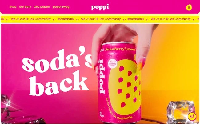 Poppi — это «пребиотическая газировка», то есть напиток, который сочетает в себе шипучесть и вкус традиционной газировки с фруктовым соком, пребиотиками и яблочным уксусом. Она выпускается с такими вкусами, как классическая кола, корневое пиво, апельсин и вишневый лаймэйд. Изначально Poppi назывался «Мамин напиток», когда соучредитель компании Эллисон Эллсворт захотела создать напиток, который был бы одновременно полезным и приятным на вкус. Poppi не только выделяется среди других напитков благодаря своим полезным свойствам, но и обладает уникальным и ярким брендом, который привлекает покупателей. По словам Эллисон, «у нас был очень веселый и яркий бренд и продукт, с которым люди могли сродниться. Люди любят его, и он был создан из ингредиентов, которые люди знали, что они эффективны и полезны для их организма». Изначально Poppi планировалось выпустить в розничную продажу в марте 2020 года. Однако планы изменились из-за пандемии Covid-19. К счастью, им удалось переключиться на выпуск безрецептурного продукта, который продавался на Amazon и других платформах электронной коммерции. Кроме того, они использовали эту возможность, чтобы инвестировать в маркетинг в социальных сетях Instagram и TikTok, где они завоевали популярность среди потребителей поколения Z.