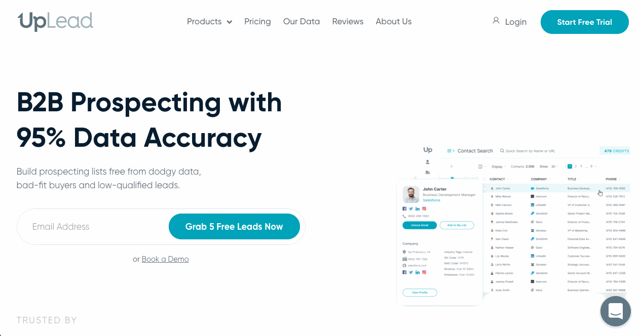 UpLead предлагает вам бесплатную пробную версию с 5 кредитами. Платные тарифные планы начинаются от $99 в месяц, и вы не будете привязаны к ним в течение года. Когда вы рассмотрите, сколько всего включено, например, количество контактов, гарантия точности данных, вы увидите, что никто не дает вам так много за так мало.