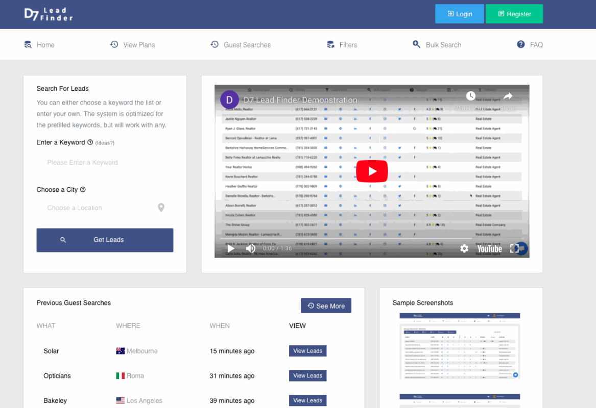 D7 Lead Finder — это инструмент генерации лидов, который позволяет пользователям находить и покупать электронные письма. D7 Lead Finder — это инструмент генерации лидов, который позволяет пользователям находить и покупать электронные письма. Инструмент утверждает, что имеет более 65 миллионов профилей и предлагает пять бесплатных поисков в день. Однако странно, что платформа содержит некоторые грамматические ошибки, поэтому она может не подойти для пользователей, которые ищут англоязычные лиды.