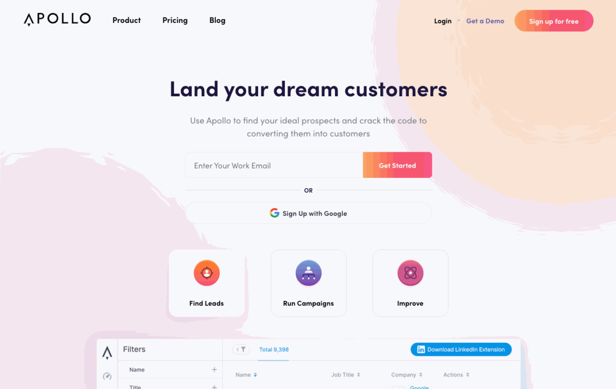 Пользовательский интерфейс Apollo.io прост в использовании.