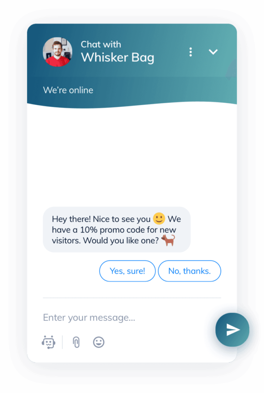 Программное обеспечение для live-чата обычно работает через окно чата, которое может принимать несколько различных форм. Это может быть всплывающее окно активного чата, в котором на вашем экране появляется окно чата с запросом о том, нужна ли вам помощь. Вы можете ввести текст в поле, чтобы начать разговор. Многие веб-сайты также включают кнопку (обычно в правом нижнем углу веб-страницы), которая позволяет клиентам инициировать конверсию, нажав для подключения к агенту.