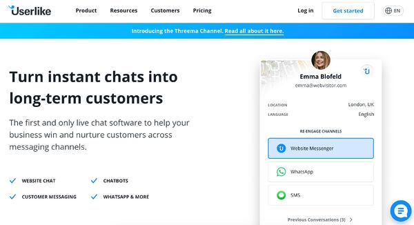 Userlike-это облачное программное обеспечение для чата в реальном времени для поддержки веб-сайтов и мобильных устройств. Это позволяет командам отправлять сообщения клиентам в режиме реального времени через их веб-сайт, Facebook Messenger или Telegram.