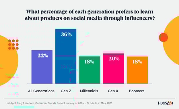 26 % потребителей говорят, что предпочитают узнавать о продуктах из уст в уста, и этот способ входит в пятерку лучших каналов для получения информации о продуктах для каждого поколения. У представителей поколений Z и X он занимает третье место.