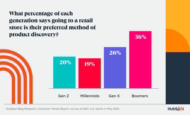 На втором месте — 28 % потребителей, которые говорят, что предпочитают узнавать о товарах в розничных магазинах. Неудивительно, что личный подход наиболее популярен среди старших возрастных групп, хотя он не совсем потерян для поколения Z и по-прежнему предпочитается почти каждым пятым миллениалом.
