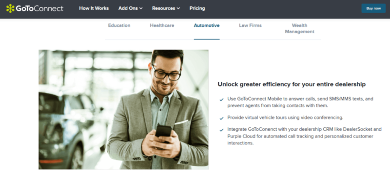 Используемый Ford и Michelin, GoToConnect-это виртуальная телефонная компания, которая отлично подходит для автомобильного бизнеса и дилерских центров. У них даже есть мобильное приложение, чтобы убедиться, что клиенты обращаются к нужному сотруднику в нужное время