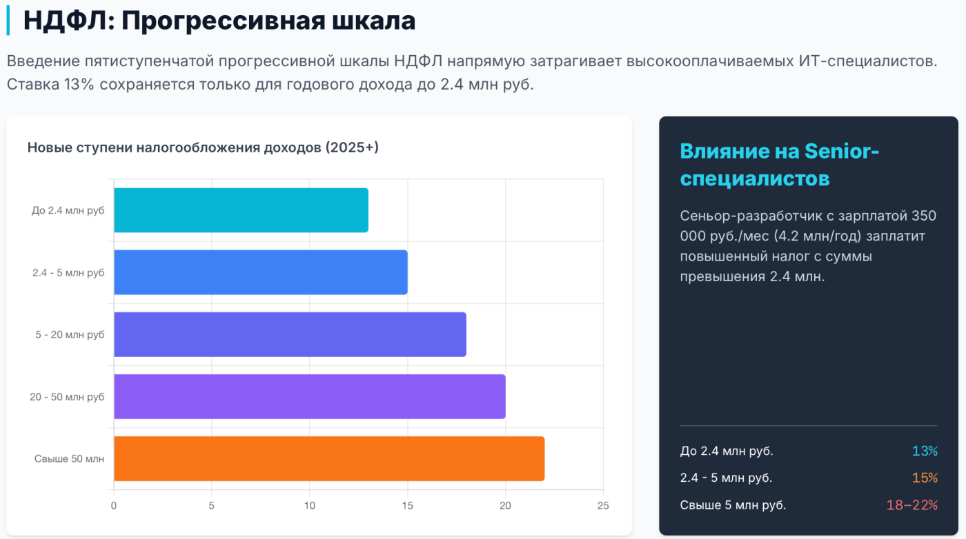 - НДФЛ: Прогрессивная шкала до 22% и тотальный контроль за удаленщиками-нерезидентами.