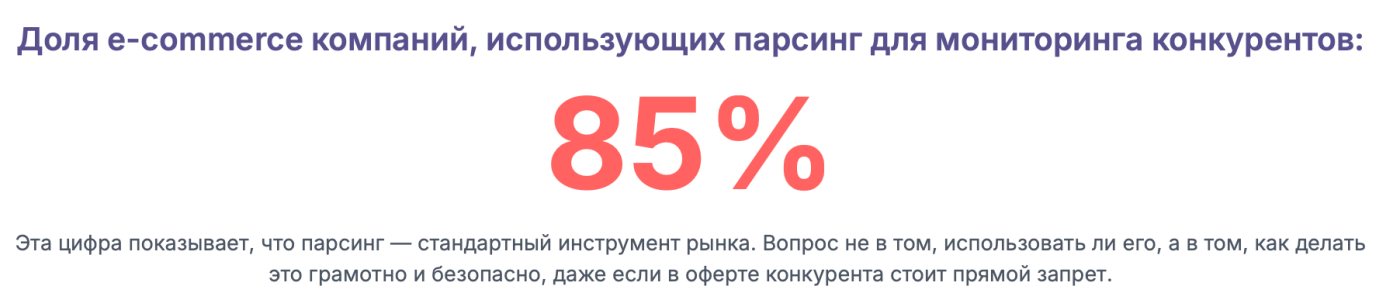 Пункт в пользовательском соглашении, запрещающий парсинг, не должен быть для вас стоп-сигналом. Рассматривайте его как предупреждение: «Мы следим за автоматизированным трафиком и не приветствуем агрессивное поведение».