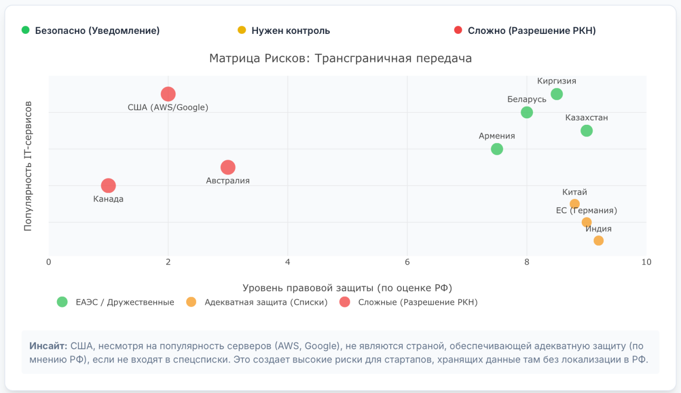 - Страны с адекватной защитой: Подписанты Конвенции Совета Европы (почти вся Европа) и страны из специального перечня РКН (Китай, Израиль и др.).9