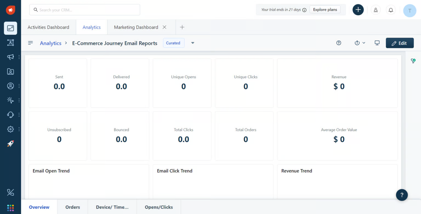 Невозможно сказать, что ваша маркетинговая кампания хорошо или плохо работает, если у вас нет данных о ее результатах. Именно поэтому Freshmarketer предлагает вам обширный список форматов отчетов и аналитики, которые вы можете использовать. Если вы организовали одну или несколько кампаний, вы можете использовать следующие шаблоны отчетов и другие на вкладке CRM Dashboards > Analytics: