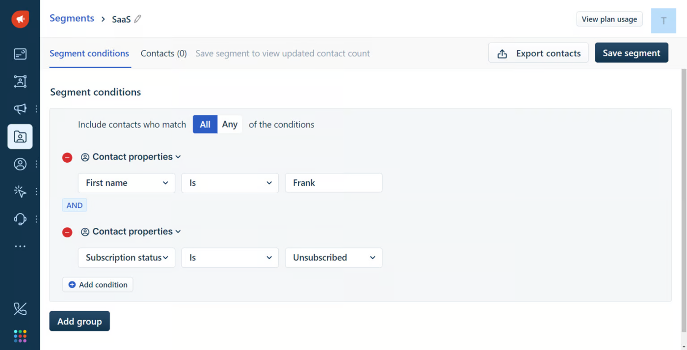 Если в вашем бизнесе имеется несколько продуктов и услуг, вы можете осуществлять их перекрестные продажи с помощью сегментов клиентов. Модуль Freshmarketer Segments позволяет создать автоматизированную очередь для объединения клиентов. Например, можно ввести имена, адреса электронной почты, статусы подписки, выбор продукта и т.д., и инструмент автоматически создаст пул лидов или клиентов. Затем можно назначить агентов по продаже дополнительных услуг или провести автоматические маркетинговые кампании по WhatsApp и SMS для продажи дополнительных услуг и продуктов.
