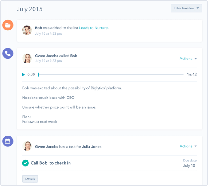 Таким образом, любой из вашей команды может продолжить с того места, на котором закончился предыдущий разговор, чтобы ответить на вопросы, развить идеи и, в конечном счете, заключить сделку.